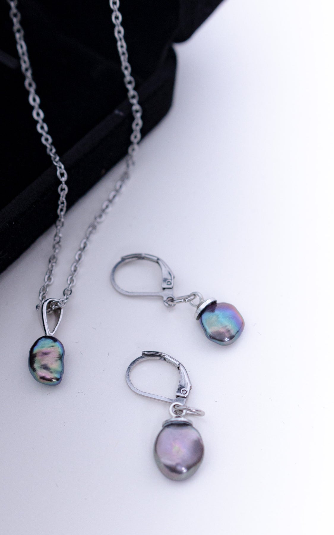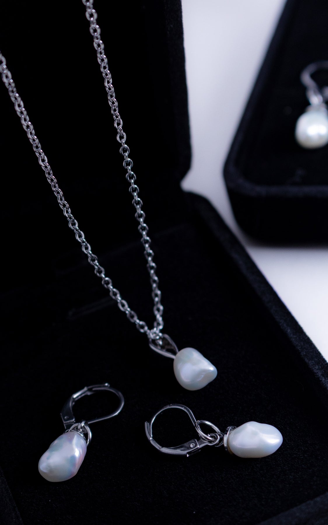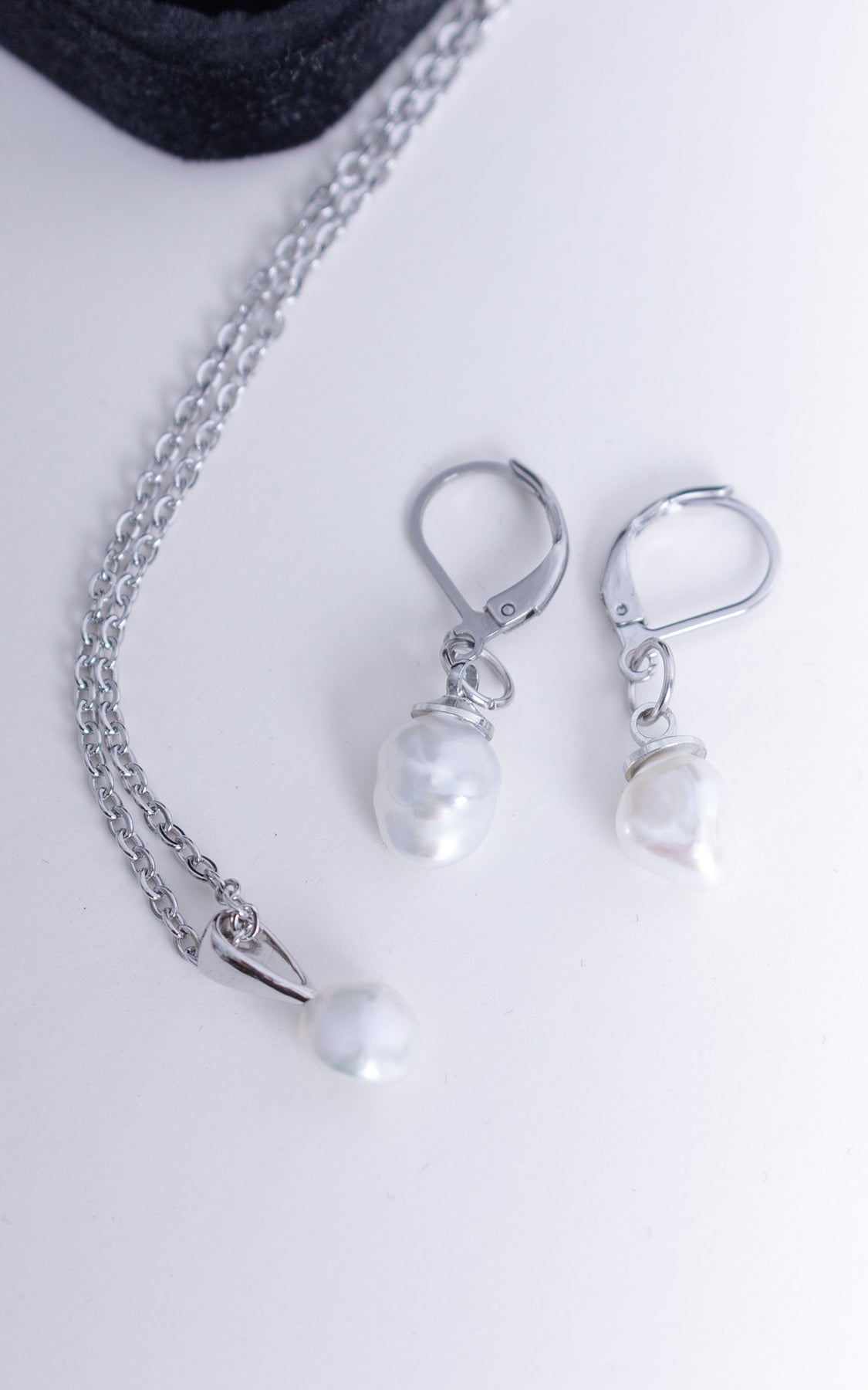 Composé d’un collier délicat et de boucles d’oreilles assorties, cet ensemble met en valeur la singularité des perles baroques blanches, choisies pour leur éclat doux et leurs formes irrégulières.