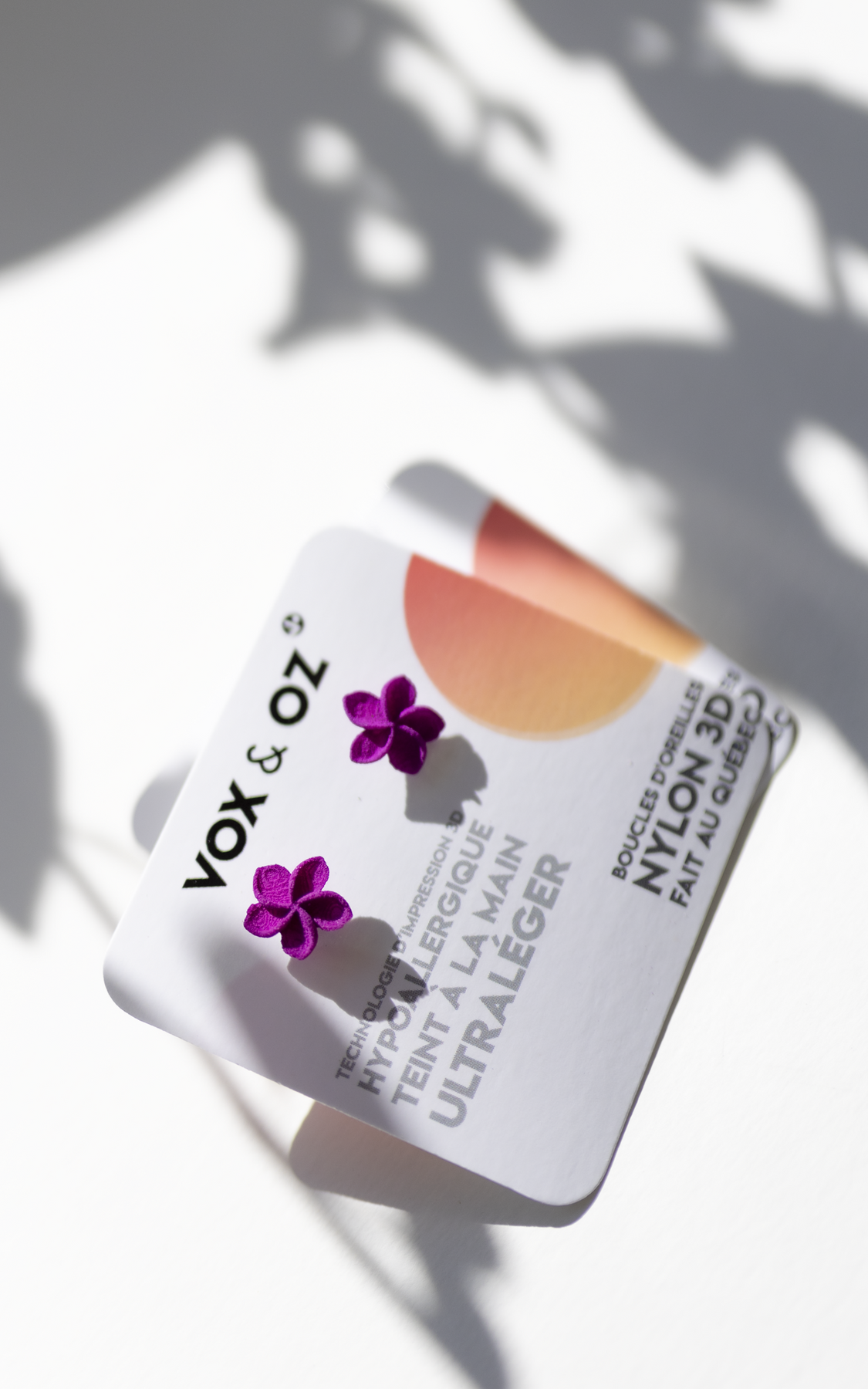 Vox & Oz prouve qu’il est possible de porter des boucles d’oreilles statement ultralégères, fabriquées au Québec, tout en respectant l’ergonomie du lobe.
