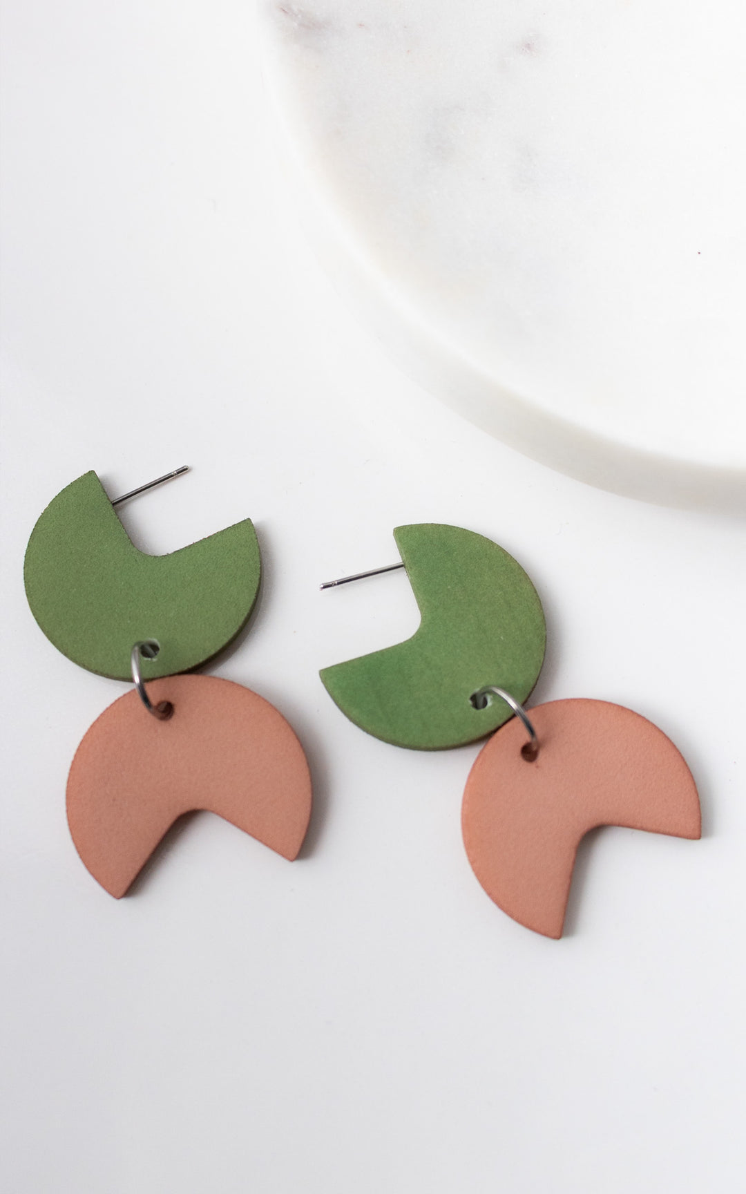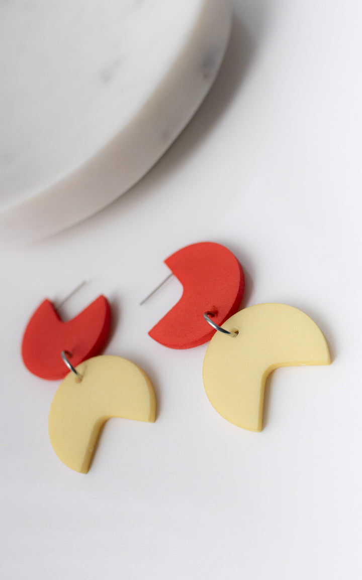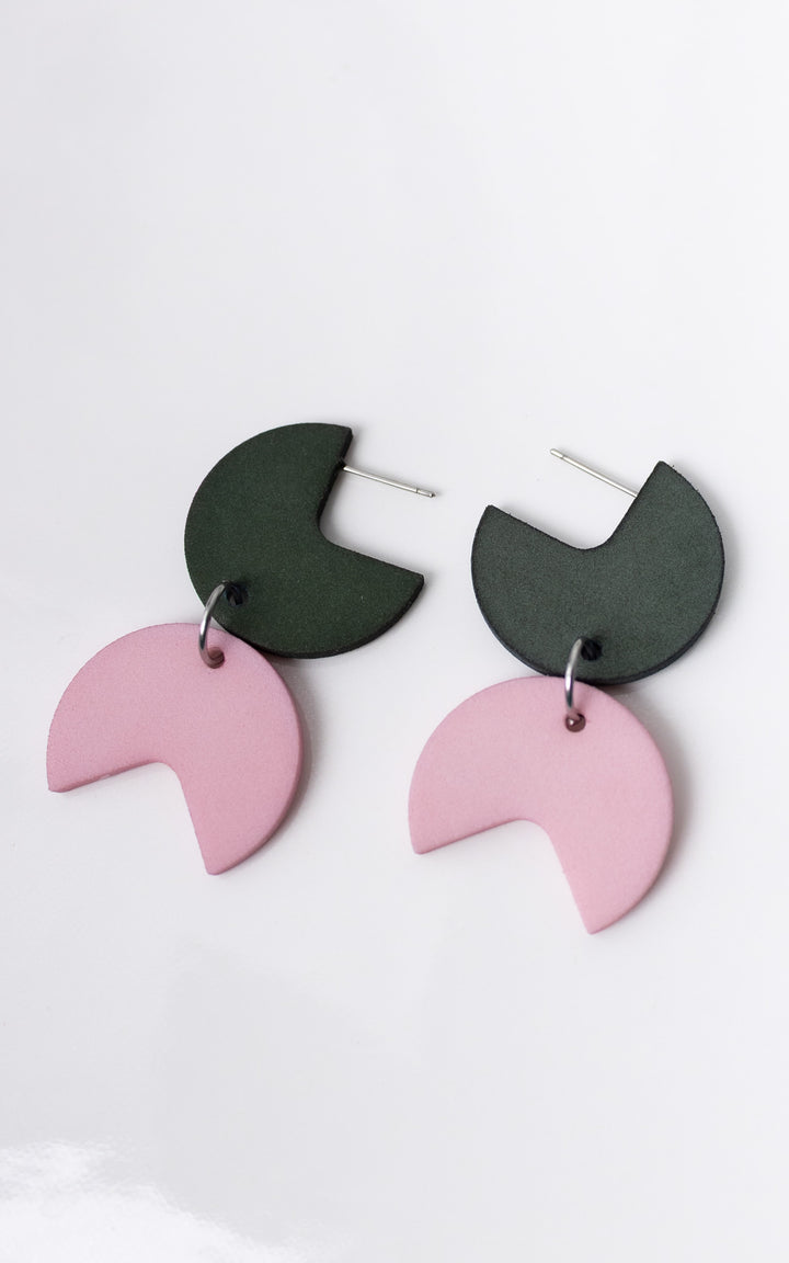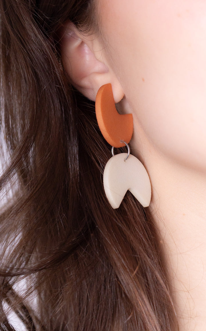 The Coco Rally earrings are a celebration of harmony and dynamism. This bold design combines a quarter-round disc with an angular piece, creating a fascinating play of shapes and patterns. The assembly of the pieces evokes a visual charade, transforming each wearing into a unique and modern experience.