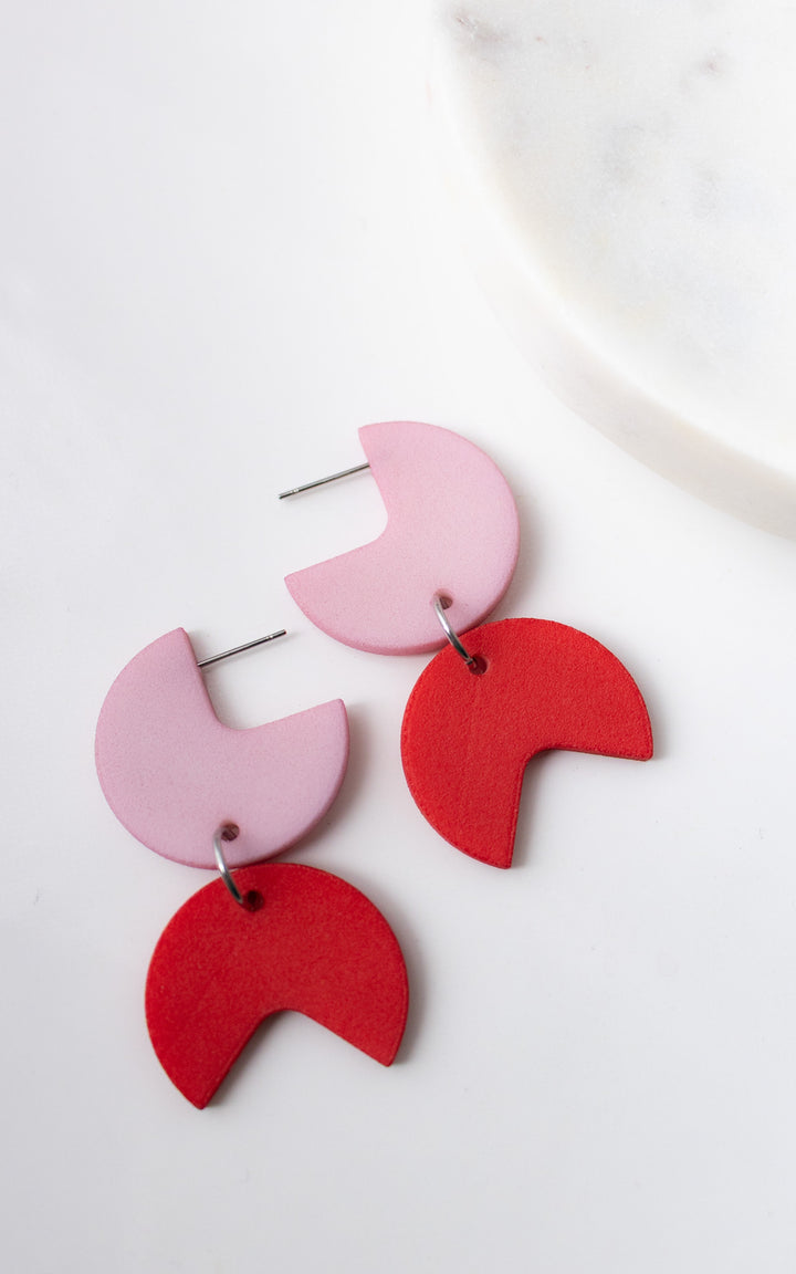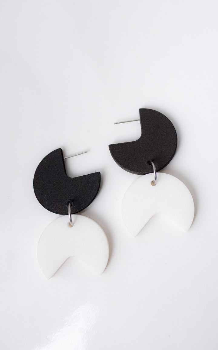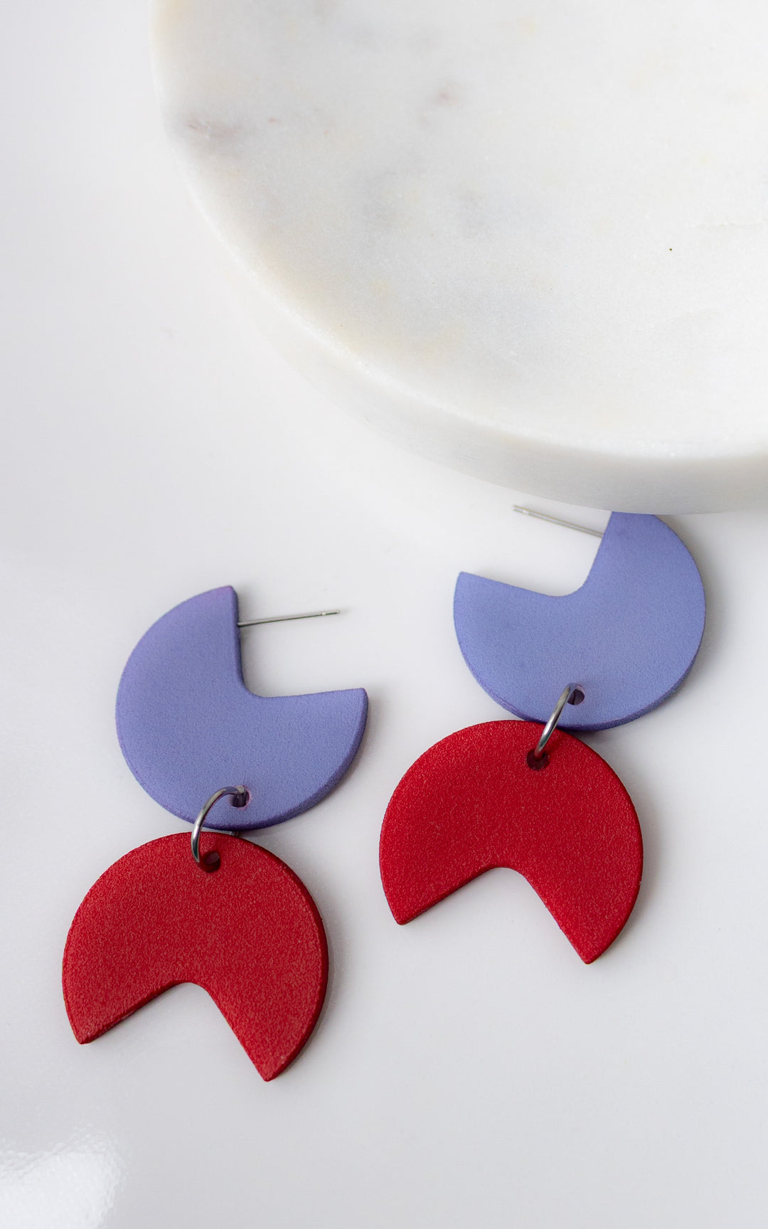 The Coco Rally earrings are a celebration of harmony and dynamism. This bold design combines a quarter-round disc with an angular piece, creating a fascinating play of shapes and patterns. The assembly of the pieces evokes a visual charade, transforming each wearing into a unique and modern experience.