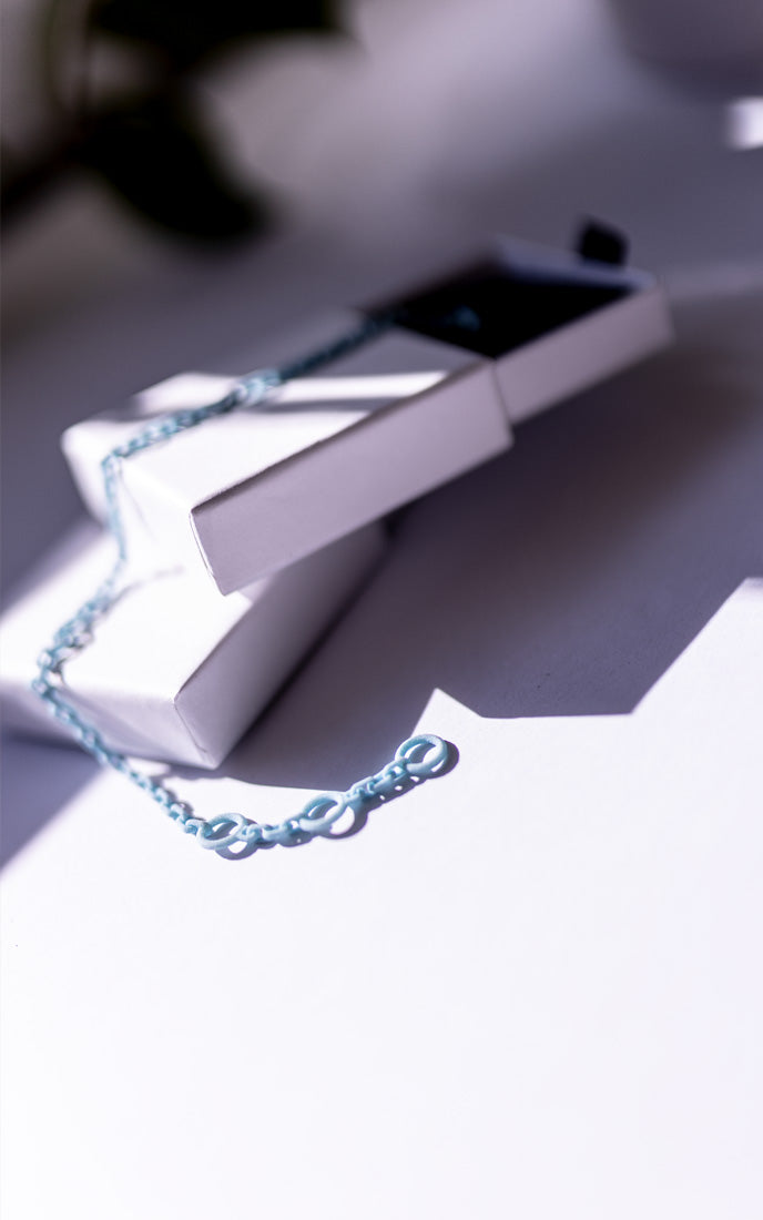 A link bracelet completely printed in 3D nylon and hand-dyed. It is made using laser technology by 3D nylon printing. Adjust the desired length.